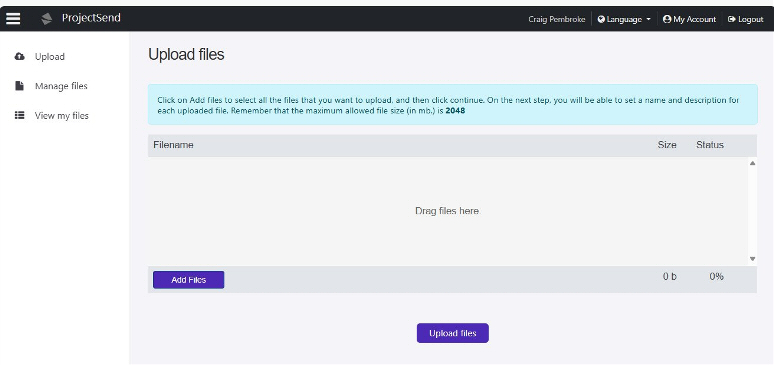 | 3. You have not uploaded any files yet so click on Upload files |
