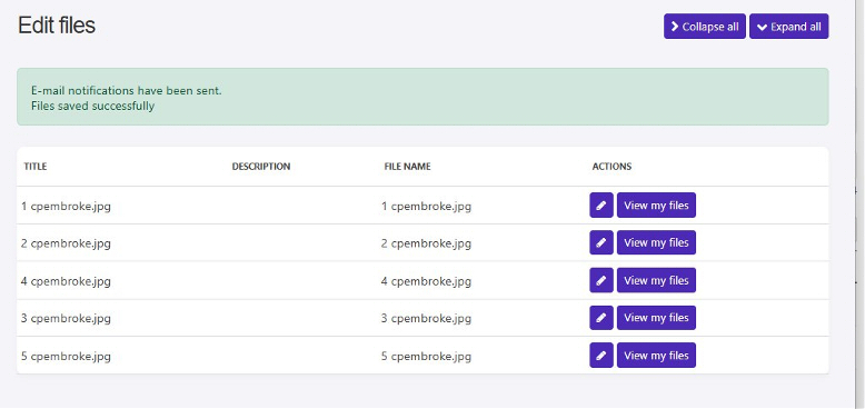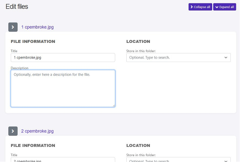 | 5. You can add information about each file (optional) or just click Collapse all to skip this step. |
